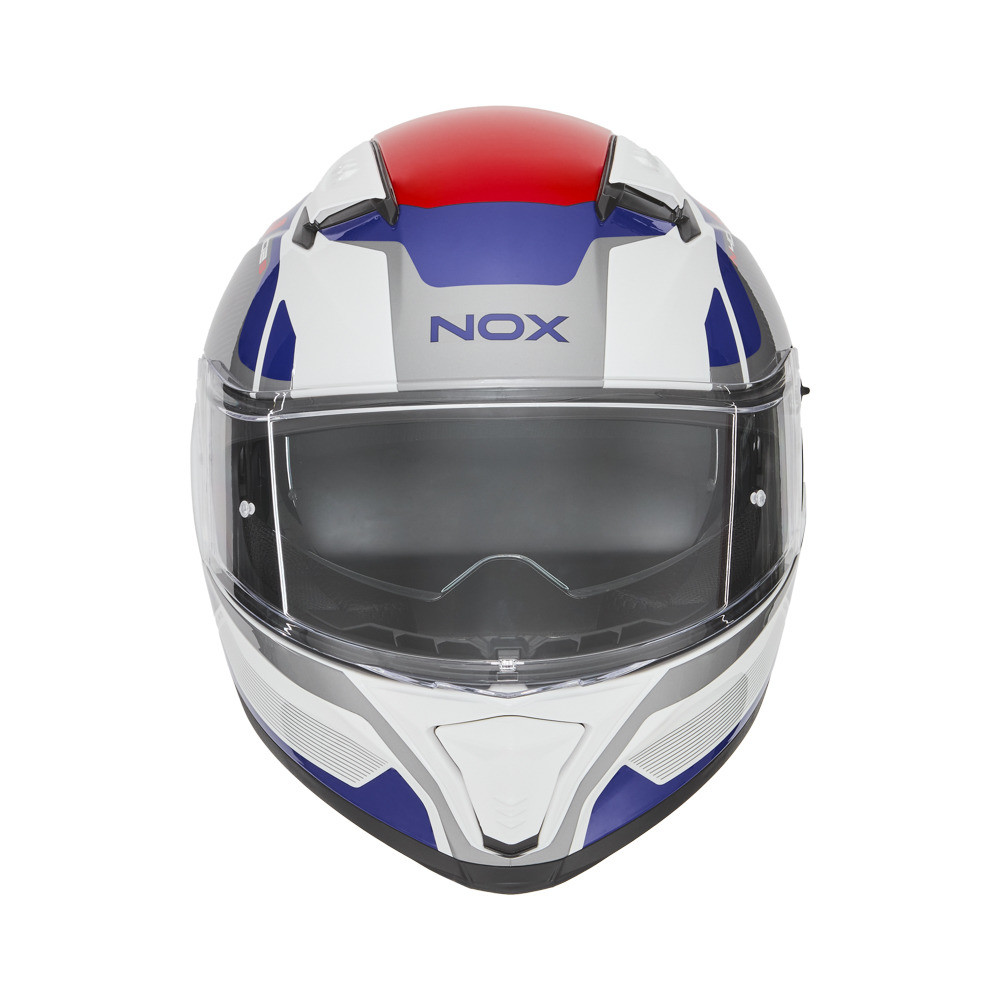 Integrální přilba N402 MENTOR, NOX (bílá, modrá, červená) 2026