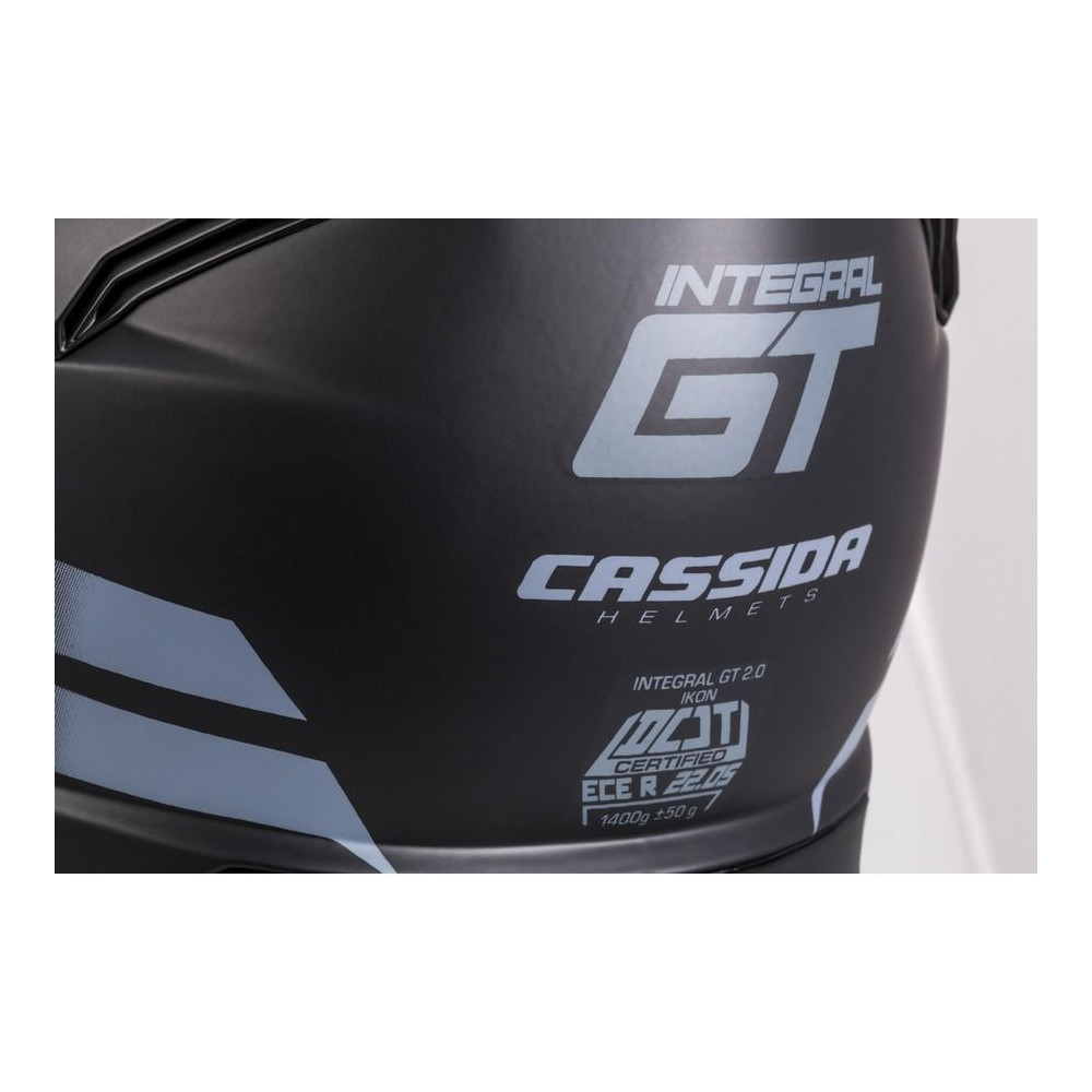Integral GT 2.0 je sportovně/cestovní model integrální přilby se sklolaminátovou skořepinou a standardy přileb vyšší střední třídy. Skolaminátová skořepina, příprava pro sluchátka komunikátorů a komfortní interiér s límcem obepínajícím hlavu ve spodních partiích přilby disponuje systémem odnímatelných lícnic Cassida Safety Opening System (Cassida SOS).