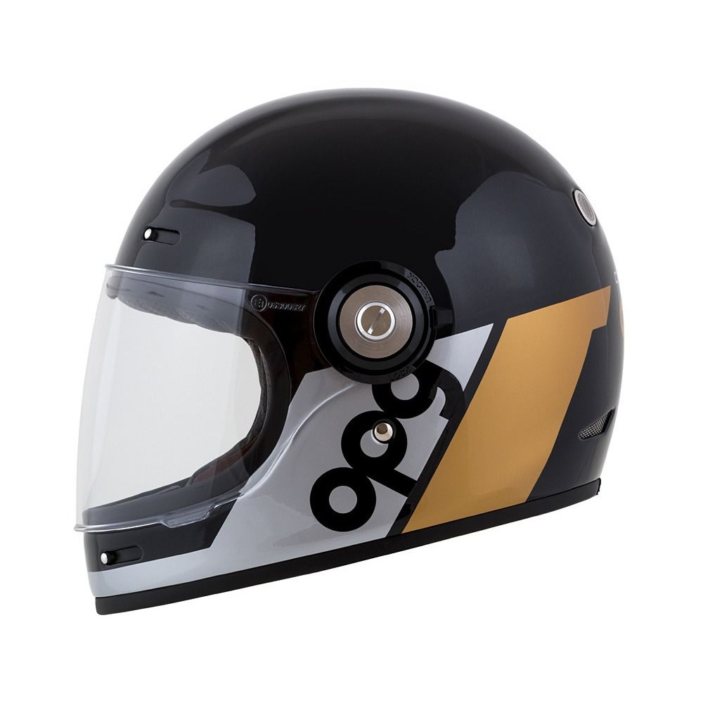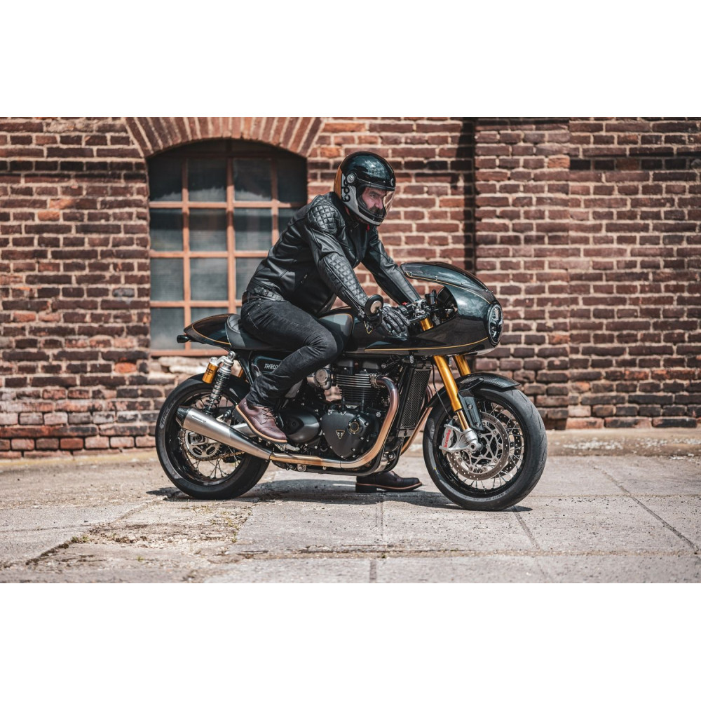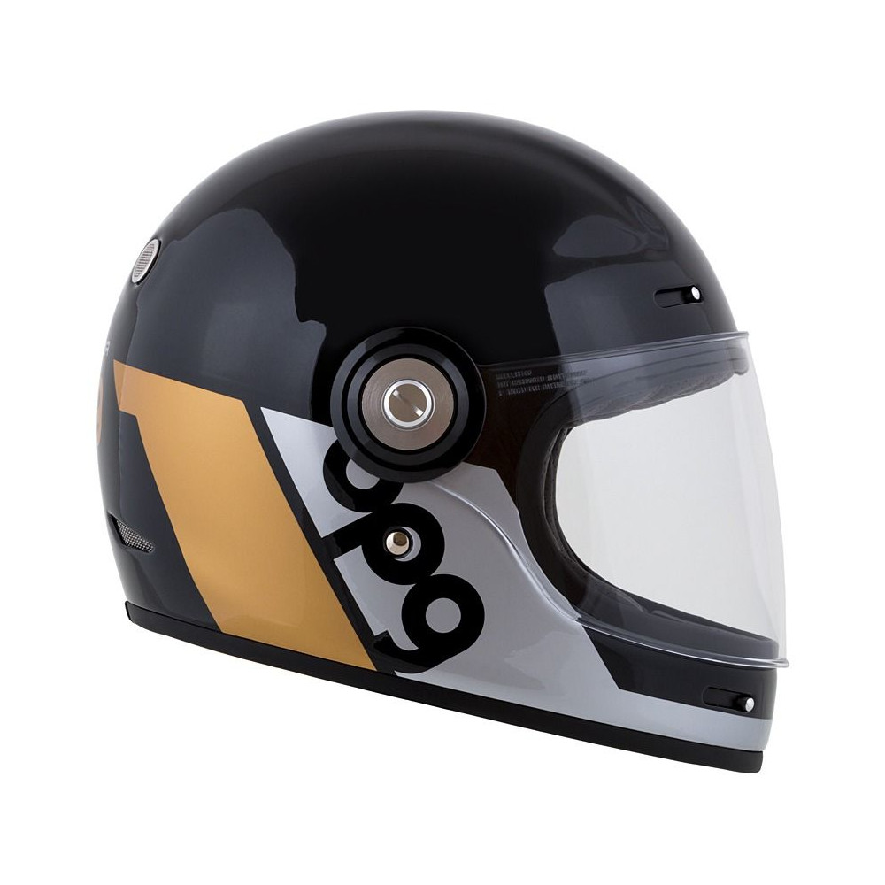 Přilba Fibre je integrální přilba se sklolaminátovou skořepinou, bezpečnostními standardy moderních přileb a vzhledem cíleným na uživatele veteránů nebo kategorie neo retro a moderních klasických motocyklů. Grafika inspirovaná designy motorsportových přileb z druhé poloviny minulého století.