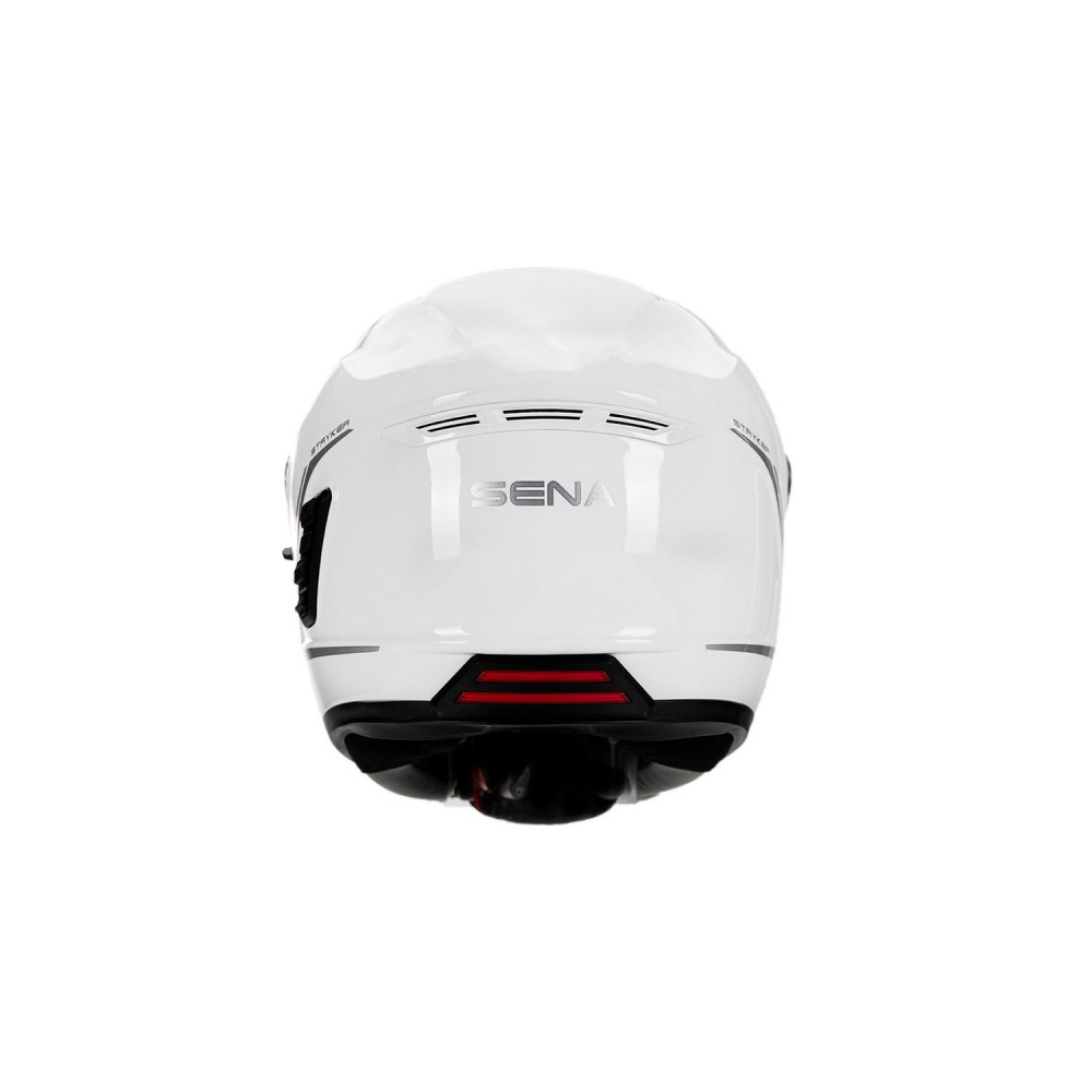 Stryker byl navržen s mnoha praktickými funkcemi, včetně vůbec prvních integrovaných zadních LED světel motocyklové přilby Sena pro lepší viditelnost jezdce. Stryker s certifikací ECE je celoobličejová přilba s lehkou skořepinou z kompozitních skelných vláken. Stryker nabízí sedm větracích otvorů včetně bradového, horního a dvou bočních, plus tři otvory které vzduch odvádějí. Přilba je vybavena výsuvnou sluneční clonou, která chrání jezdce před nadměrným oslněním během jízdy. Díky mikrometrické přezce pod bradou přilba pohodlně a bezpečně drží na svém místě po celou dobu jízdy.
