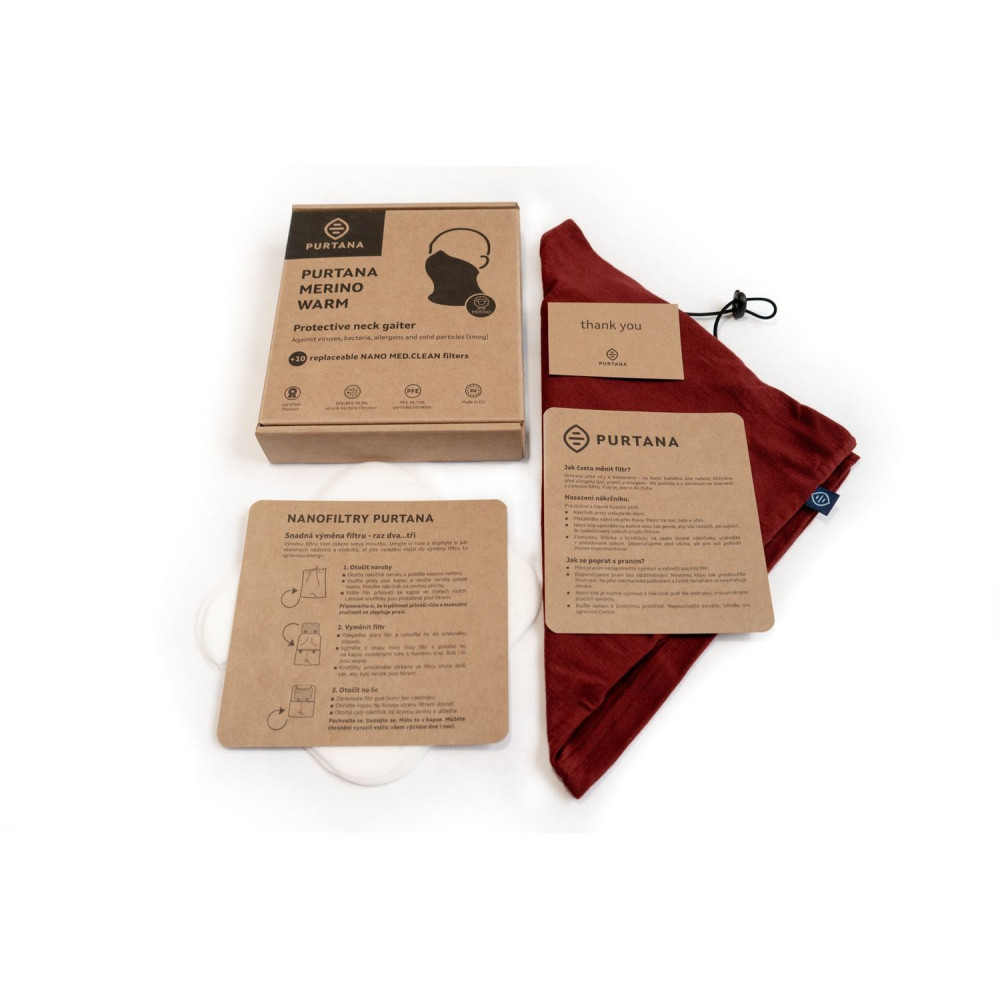 Nákrčník vyrobený z ovčí vlny zvané Merino je vhodný pro všechna roční období, protože v zimě hřeje a v létě chladí. Chytrá vlákna, z nichž se Merino nákrčník splétá, mají samočistící schopnost, která zabraňuje množení bakterií a uchovává tak zdravé prostředí bez zápachu. Absorbční kvalita vláken Merino zachytí až 35 % vlhkosti a udrží tak pokožku suchou. Tenoučká vlákna jsou tak jemná, že nedráždí pokožku, neškrábou a krásně splynou s tvarem těla. V kombinaci s výměnnými nano filtry je tak (na rozdíl od běžné roušky) vhodný pro dlouhodobé nošení, protože svou strukturou neposkytuje prostor pro množení bakterií a kvalitou vláken eliminuje vlhkost a zápach. Používáme výhradně Merino z etických ovčích farem, kde jsou zvířata chována s láskou a tzv. mulesing-free.