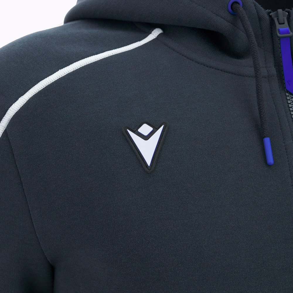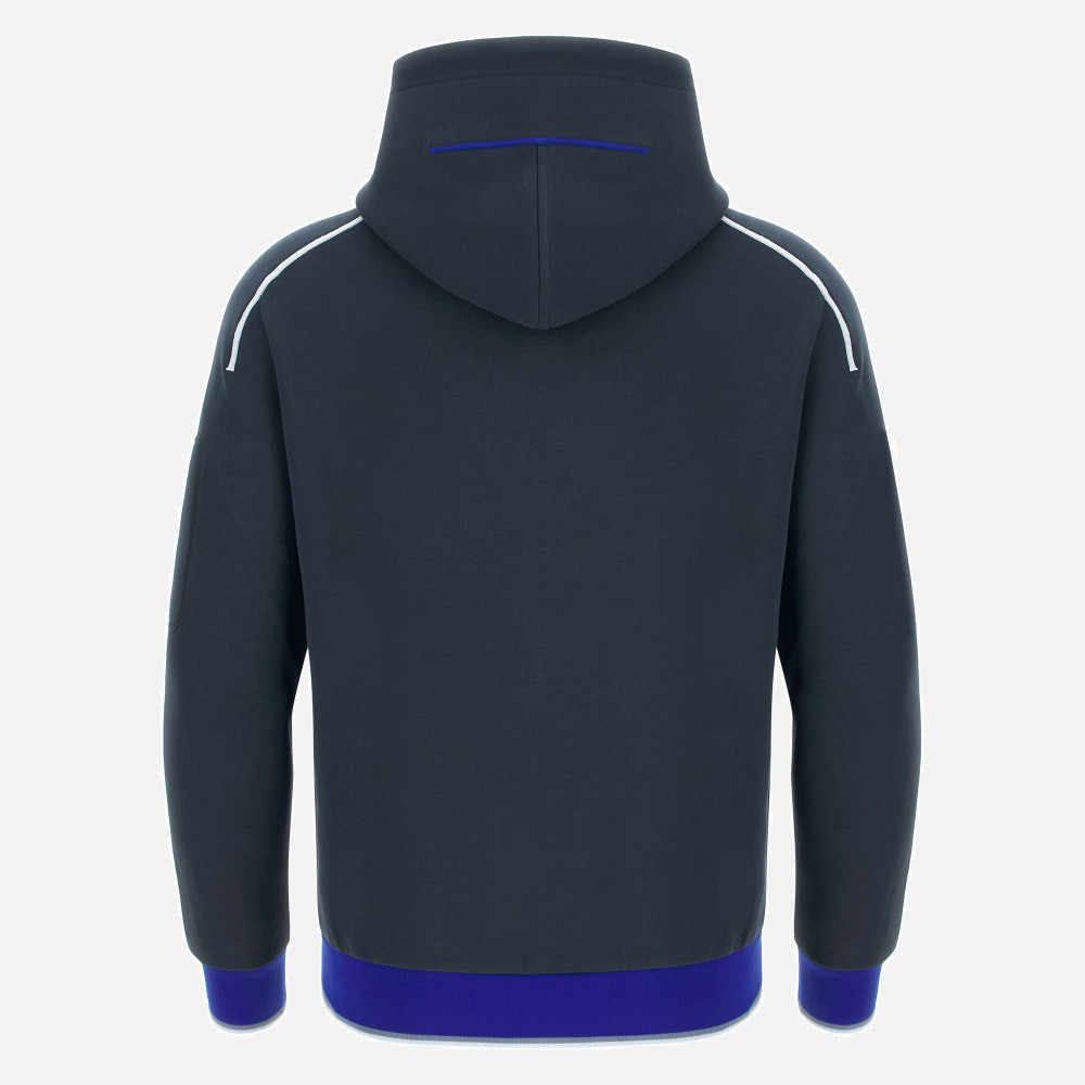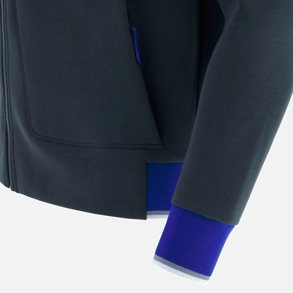 pohodlná mikina na zip s dvojitým jezdcem a kapucí se stahovací šňůrkou. Žebrované manžety a lem v kontrastní barvě dotvářejí siluetu.