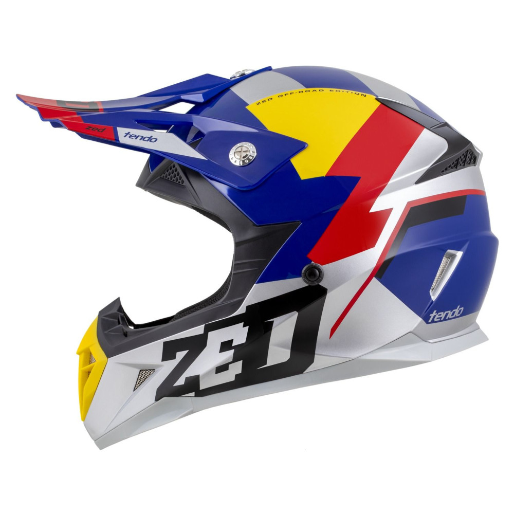 Motokrosová přilba X1.9D TENDO, ZED, dětská (modrá perleť/červená/žlutá/stříbrná) 2025
