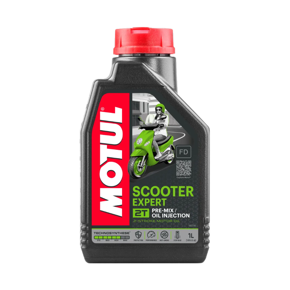 Olej složením potlačuje kouření motoru a tvorbu usazenin. Olej MOTUL Scooter Expert 2T si zachovává své vlastnosti při jízdě po městě, kde motory pracují v těžkých podmínkách, jako je jízda za studena, časté rozjezdy a špatné chlazení. Tento motorový olej je vhodný jak pro přímé vstřikování oleje do benzínu, tak pro míchání s benzínem.