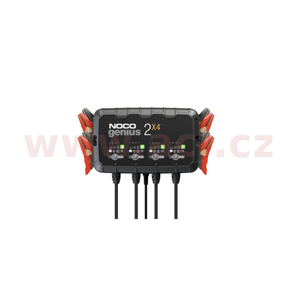 Inteligentní automatická nabíječka umožňuje současně nabíjet nebo udržovat napětí 4 bateriíí s maximálním nabíjecím proudem 2 A. Vhodná pro baterie o kapacitě do 40 Ah včetně lithiových baterií LiFEPO4.