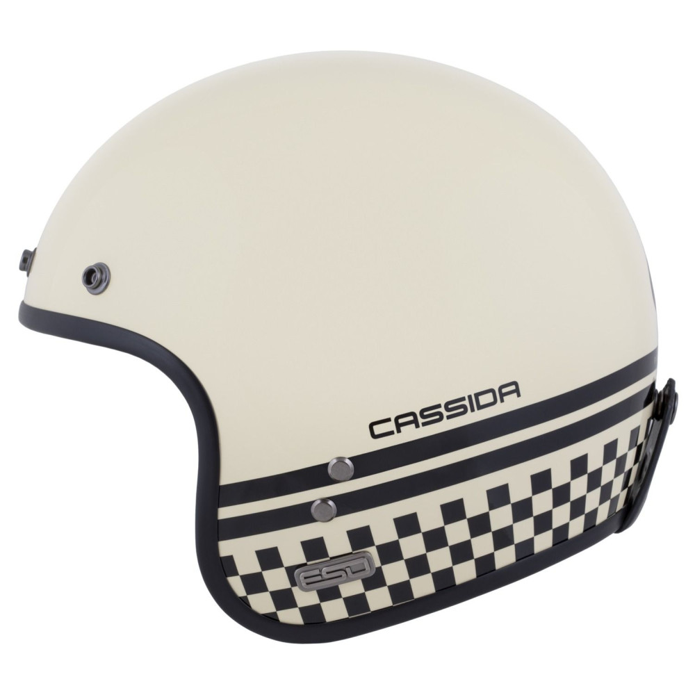 CASSIDA ESO je model otevřené neo retro přilby se sklolaminátovou skořepinou, která disponuje standardy prémiových přileb této kategorie a splňuje bezpečnostní a certifikační standardy současných přileb.