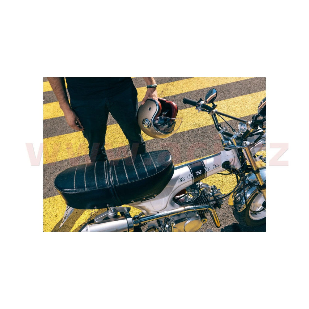 HERITAGE je otevřená přilba s plexi a se sluneční clonou, vyrobena v retro stylu s velkou dávkou preciznosti a přípravou pro sluchátka komunikátorů.