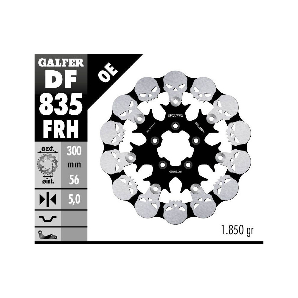 Přední brzdový kotouč HARLEY-DAVIDSON (300X56X5) plovoucí SKULL (vzor lebky), GALFER