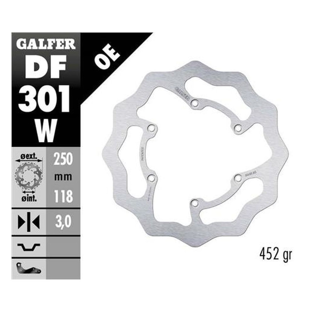 Přední brzdový kotouč SUZUKI RM 125/250 '85-'08, DR-Z 250/400 '00-, YAMAHA WR 250F '03-'16, WR/YZ 426F/450F '00-'15, YZ 125/250 '08-'17 WAVE (250X118X3MM), GALFER