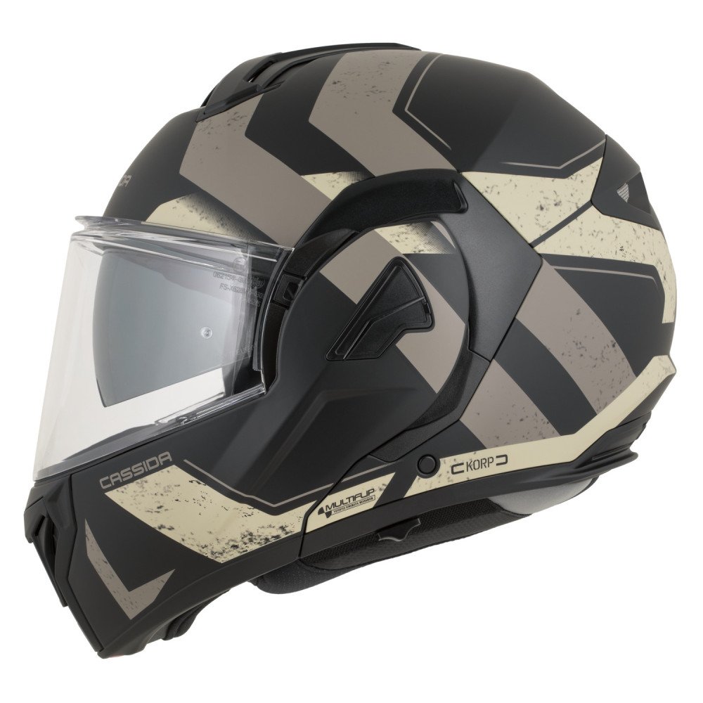 Překlopná přilba CASSIDA MultiFlip Korp (černá matná/písková/khaki) 2026