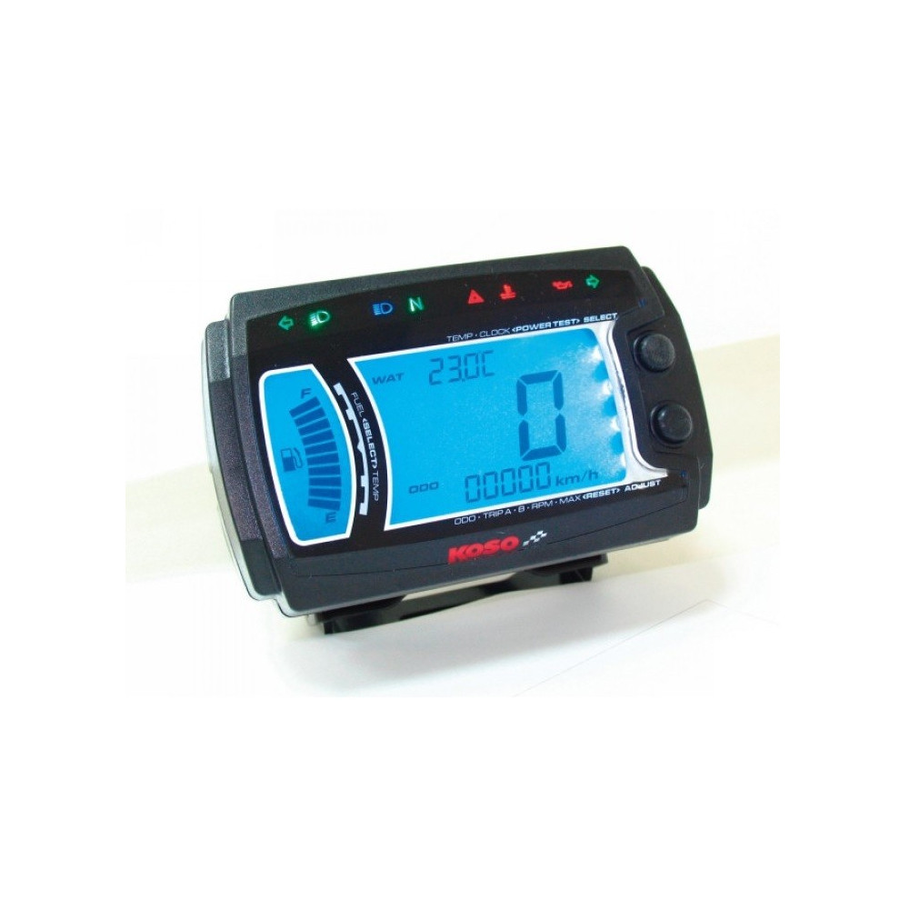 Multifunkční digitální tachometr s otáčkoměrem, 8 kontrolkami, počítadlem denních a celkových kilometrů, hodinami,ukazatelem paliva a teploměrem. Jednoduchá montáž na řídítka. Ukazatel paliva je funkční jen v případě, že motocykl je tímto čidlem vybaven. Součástí balení je samotný přístroj, montážní sada, elektroinstalace, snímač magnetu a magnet s držákem magnetu.