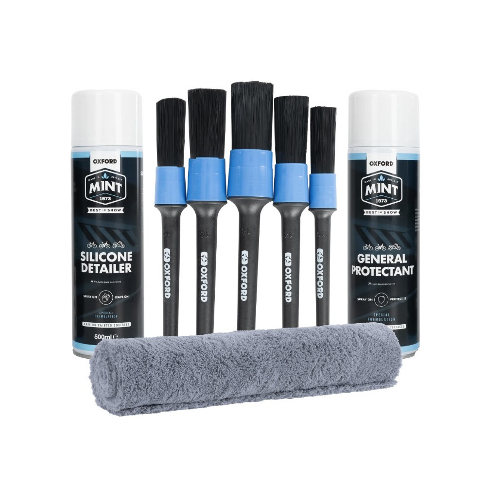 Většina jezdců je na své motocykly nesmírně hrdá a dbá na to, aby byly čisté a dobře udržované. Sada pro detailing Mint Detailing Kit obsahuje vše, co potřebujete k udržení karoserie a komponentů motocyklu v BEZVADNÉM stavu.