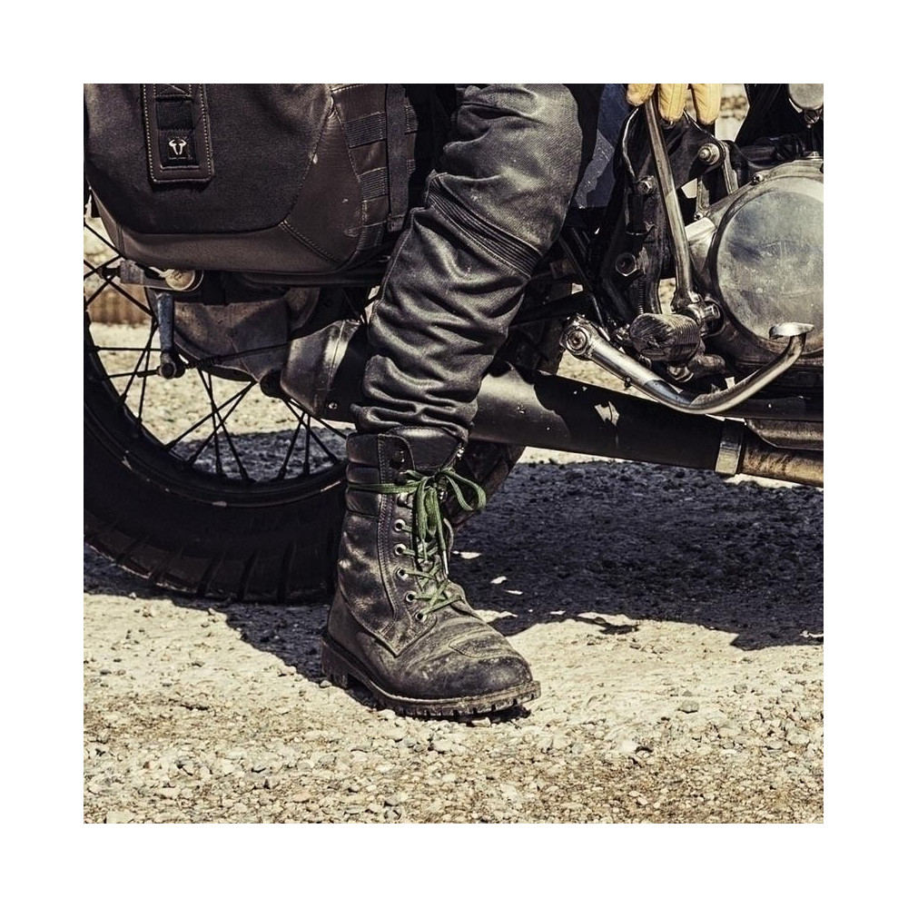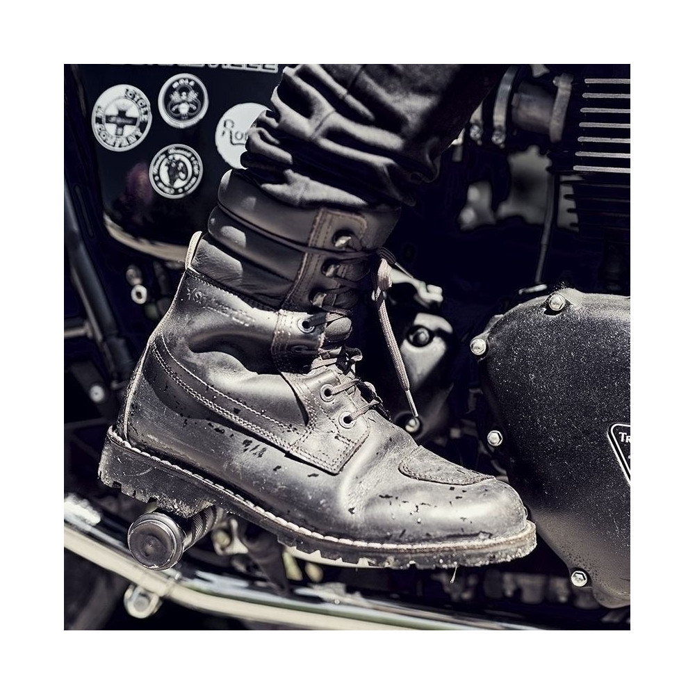 Stylové boty YU'ROK Vás nadchnou klasickým designem, který pochází z rukou italských návrhářů. Jde o nesmírně komfortní obuv, která Vás nezklame na motorce i mimo ni. Jemné polstrování v horní části bot zajistí, že bota nedře do nohy a je velmi pohodlná. Boty jsou vyrobeny z prvotřídní kůže, která je šetrně barvena. Způsob barvení ovlivňuje i pozdější chování této kůže, bota bude čase získávat patinu a tím jedinečný vzhled. K obuvi jsou přiloženy dva páry tkaniček v různých barvách (zelená a černá). Další výhodou je klimatická membrána, která Vás nezklame ani v nepříznivém počasí, ale zároveň je prodyšná a tak je bota pohodlná i v teplém počasí.